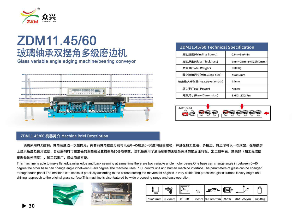 玻璃軸承雙擺角多級(jí)磨邊機(jī)